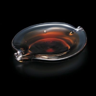 Овальная тарелка. Цветное основание. Ручная работа. Чашки Hamon Rim Bowl и тарелочки Konoha Oval Plate входят в серию посуды, совместно созданную мастерами традиционного стекольного ремесла «Цугару Видро» северной префектуры Японии Аомори и известным японским шеф-поваром высокой кухни Такадзава. Это современная стеклянная посуда, заключившая в себя всю свежесть, рожденную богатой природой префектуры Аомори. Прозрачные тарелки и чашки, вручную создаваемые из стекла мягкой текстуры с помощью древней техники выдувания. Простые формы из твердого холодного материала, с глубиной, выраженной за счет толщины стекла. Высота 35 мм